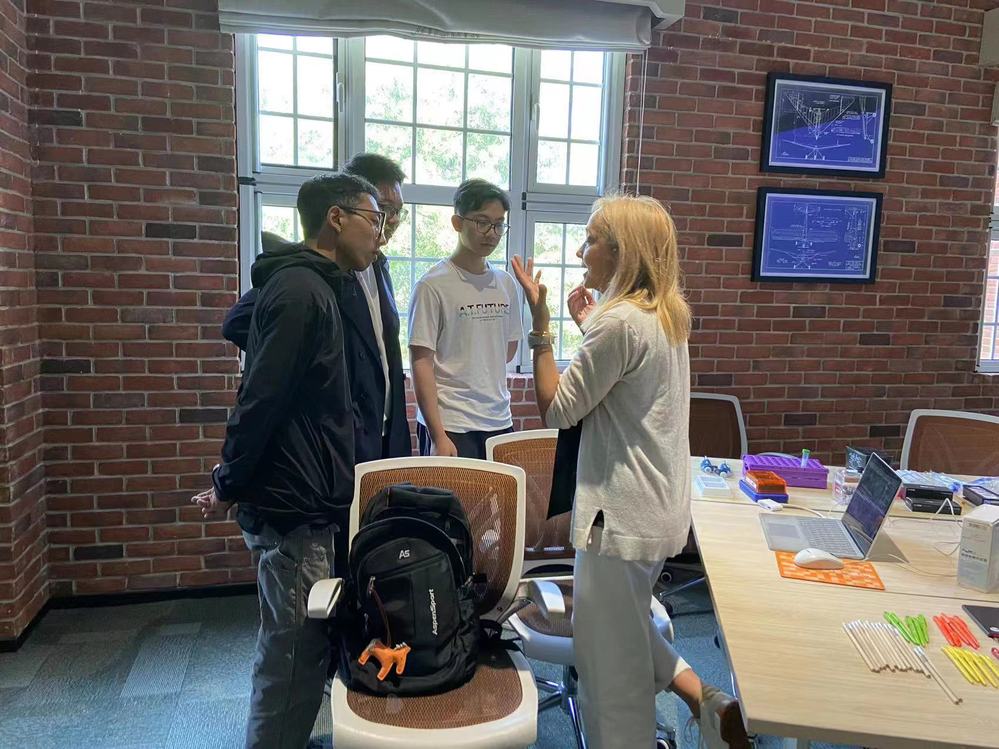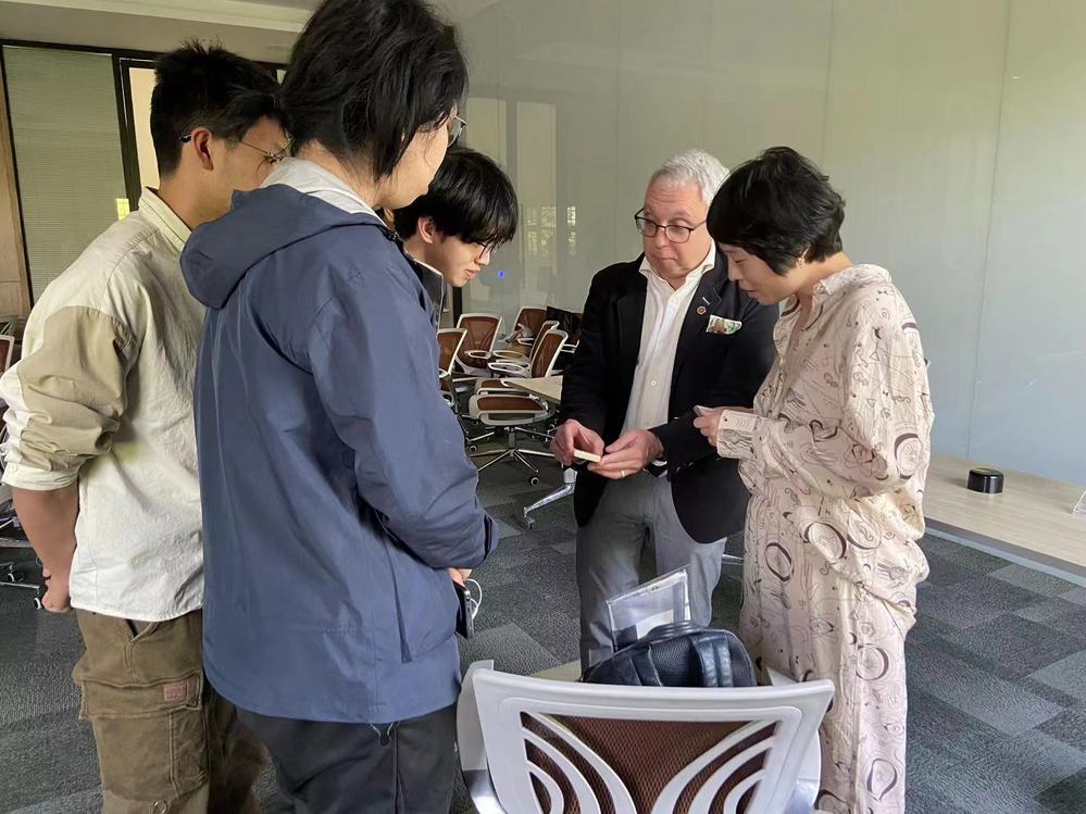 随后,联合实验室一行到建筑学院观摩座谈。在雷一彬、徐强老师带领下,António Candeias教授团队深入细致地参观了建筑学院实验中心的建筑物理实验室、古建筑模型制作室及学院办学空间,认真观摩了“基于实景融合的传统聚落与建筑营造虚拟仿真实验室”。