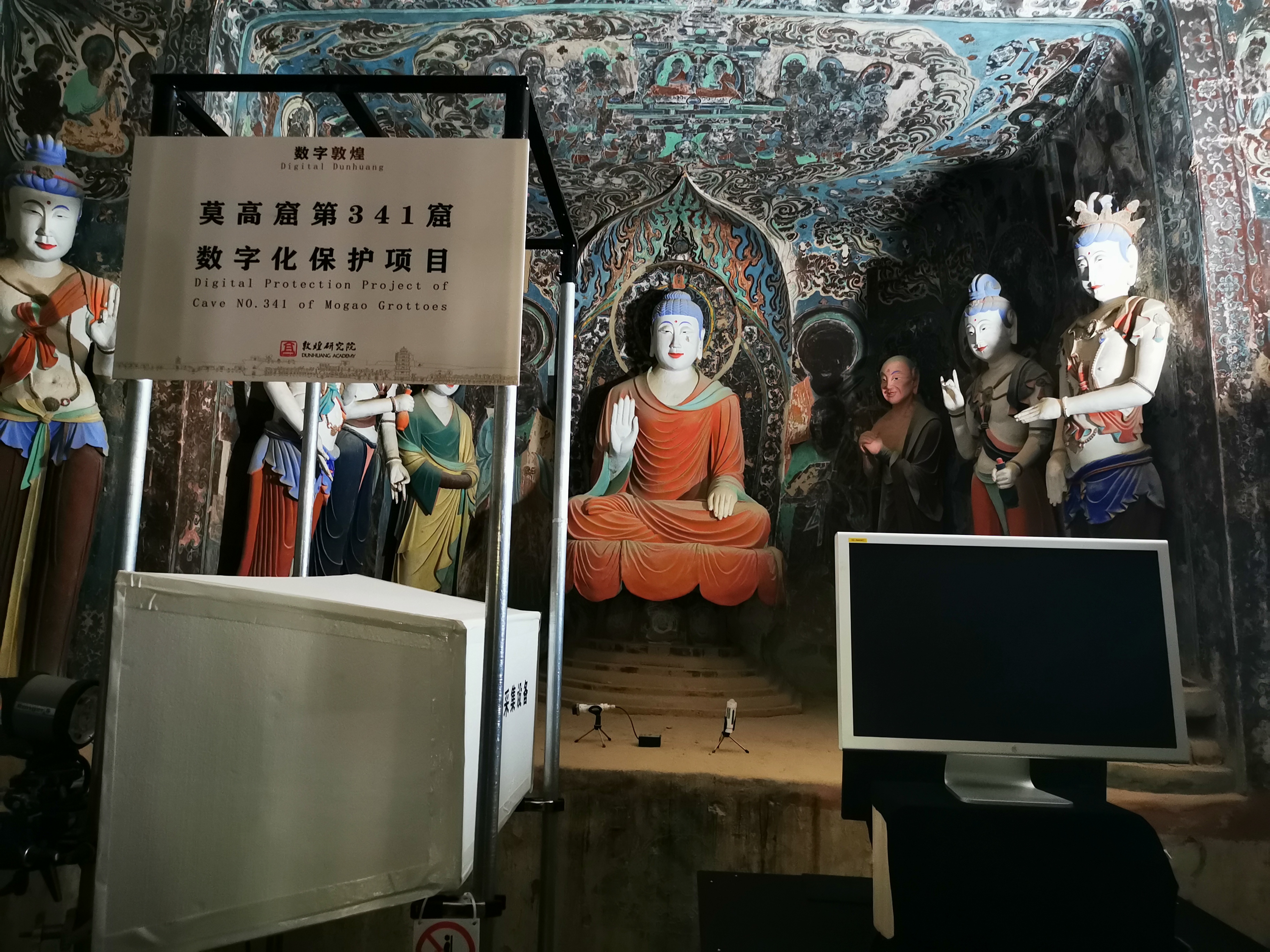 交流结束后,在敦煌研究院文物数字化研究所金良、宋利良老师等陪同与讲解下,吴永发院长一行参观调研了莫高窟341洞窟数字化保护现场以及敦煌石窟文物保护研究陈列中心,考察组充分学习了解了洞窟数字化保护的相关设备和技术。