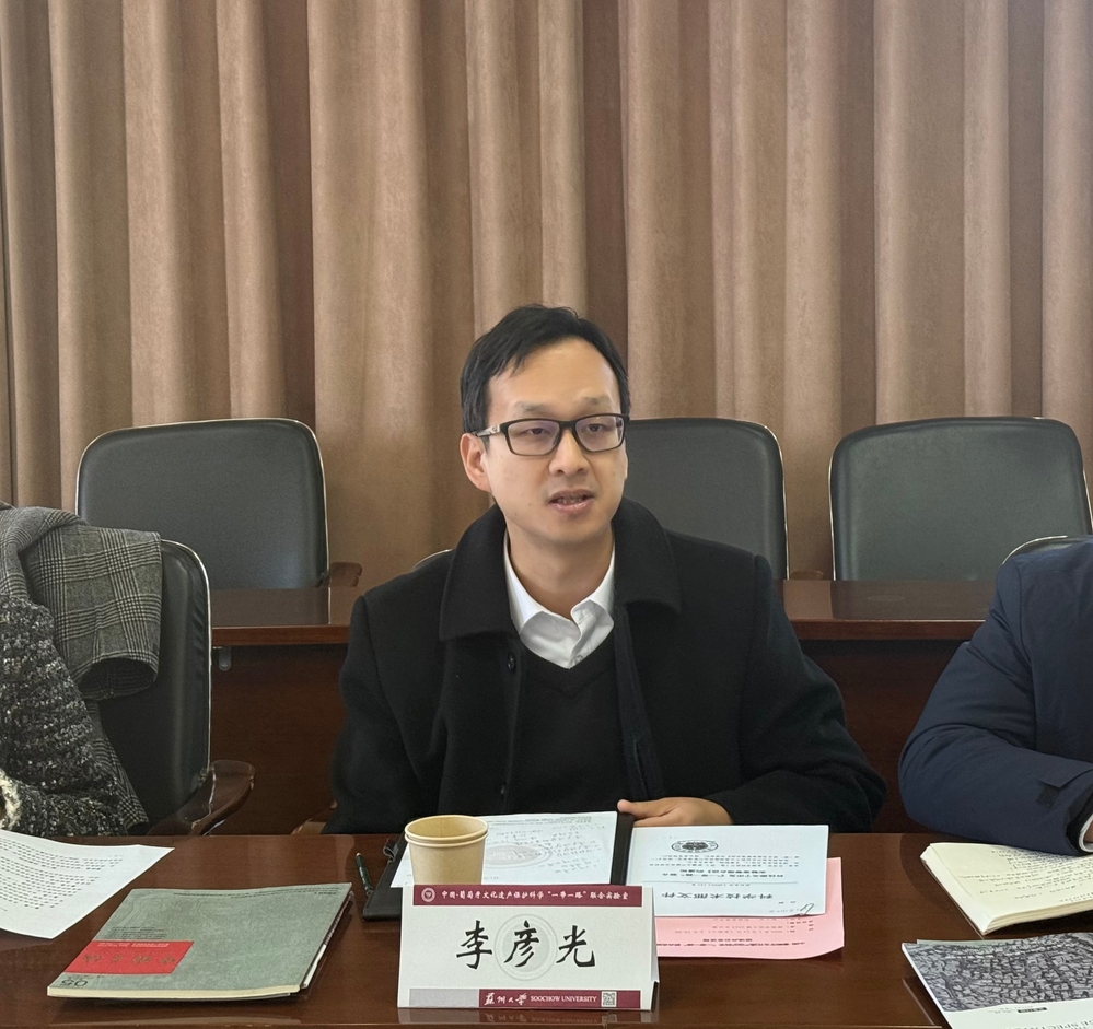 参观1月15日,中国-葡萄牙文化遗产保护科学“一带一路”联合实验室现场办公会在建筑学院顺利召开。苏州大学党委常委、副校长张正彪,科技党委书记徐小乐,国际合作交流处处长李彦光,科学技术研究院副院长刘开强,科学技术研究院副院长蒋宇,科研院国际科研合作办公室主任孟庆权、科研院平台管理办公室主任吴彬,建筑学院院长、联合实验室主任吴永发,学院党委书记陈国凤,学院副院长、联合实验室副主任吴尧,联合实验室首席科学家、欧洲科学与艺术院院士沈景华等联合实验室相关工作人员参加会议。会议由徐小乐主持。