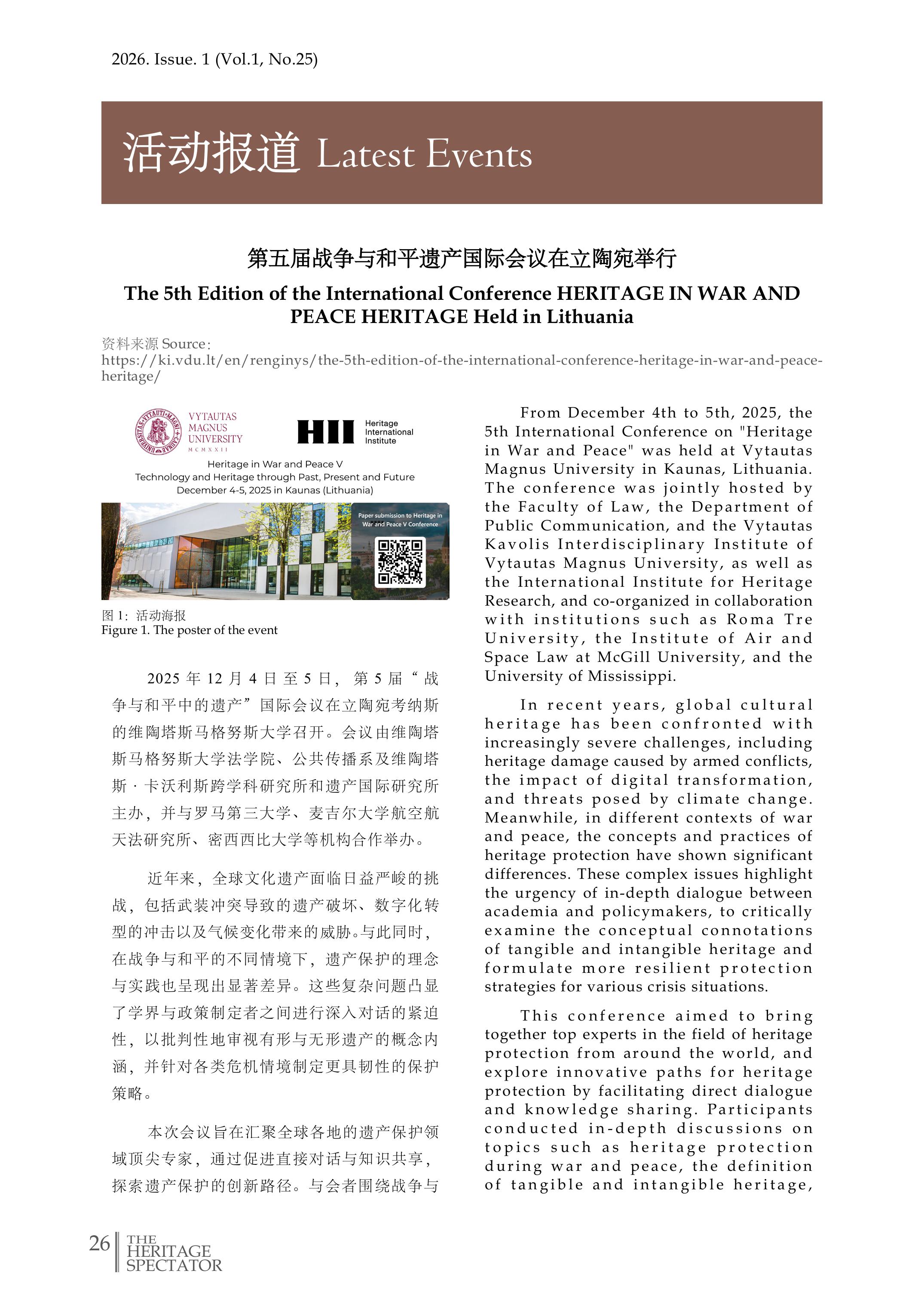 联合实验室中英双语双月刊《遗产研究国际动态》(内刊)2026年第一期(总第二十五期)已发布,全刊内容可在此下载