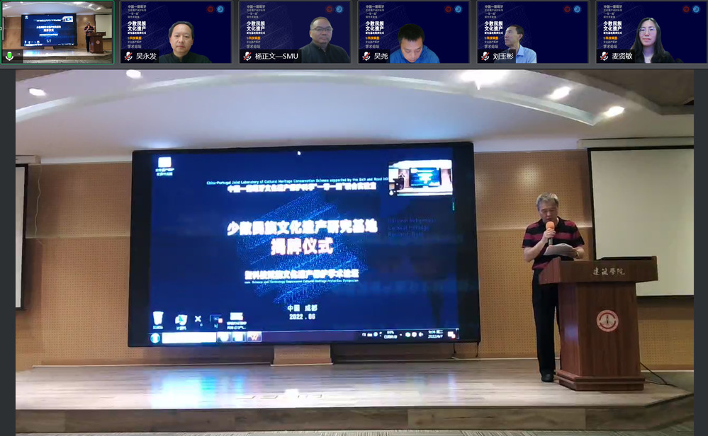 苏州大学金螳螂建筑学院副院长、联合实验室副主任吴尧作专题报告6月7日, 中国-葡萄牙文化遗产保护科学“一带一路”联合实验室少数民族文化遗产研究基地揭牌仪式暨科技赋能文化遗产保护学术论坛于西南民族大学建筑学院举行,来自西南民大及各共建单位的专家与师生通过线下会场和线上会场出席活动。