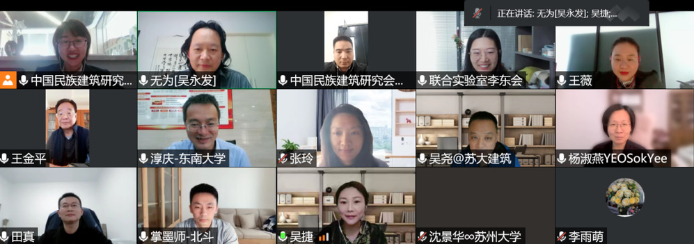 评审专家讨论发言10月14日,中国民族建筑研究会团体标准立项评审会议通过线上形式召开,会议围绕《古建筑现状调查标准》(拟)、《徽州古民居分类保护利用技术细则》(拟)、《既有办公建筑近零能耗改造技术标准》(拟)三项团体标准展开立项评审。中国民族建筑研究会主任魏颜朋、副主任黄春媚以及苏州大学建筑学院院长、国家“一带一路”联合实验室主任吴永发,建筑学院副院长、联合实验室副主任吴尧,联合实验室首席科学家、绿色建筑国际研究中心主任沈景华,绿色建筑国际研究中心副主任吴捷等出席会议。会议由黄春媚主持。