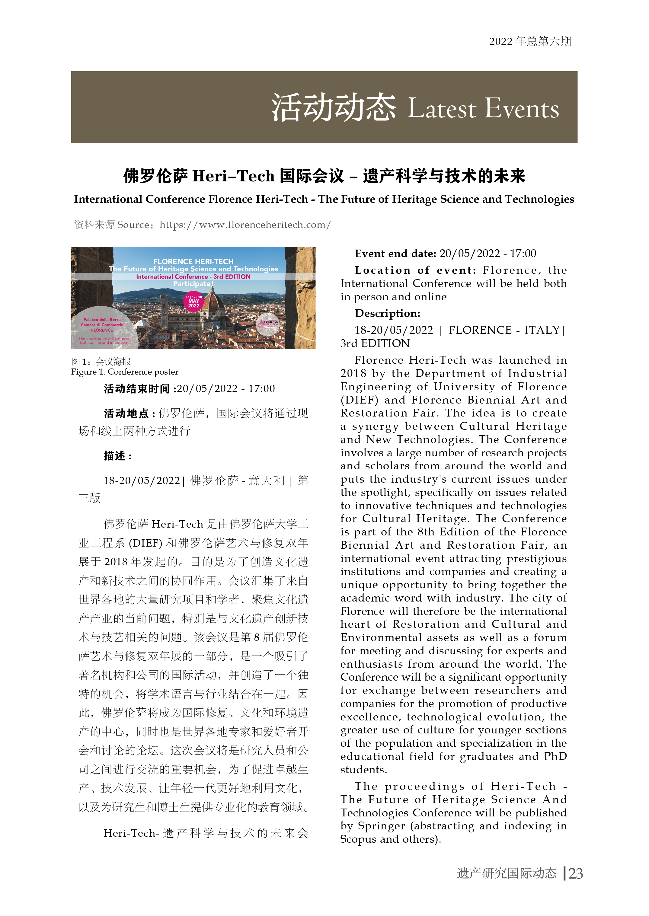 联合实验室中英双语双月刊《遗产研究国际动态》(内刊)2022年总第六期已发布,全刊内容可在此下载