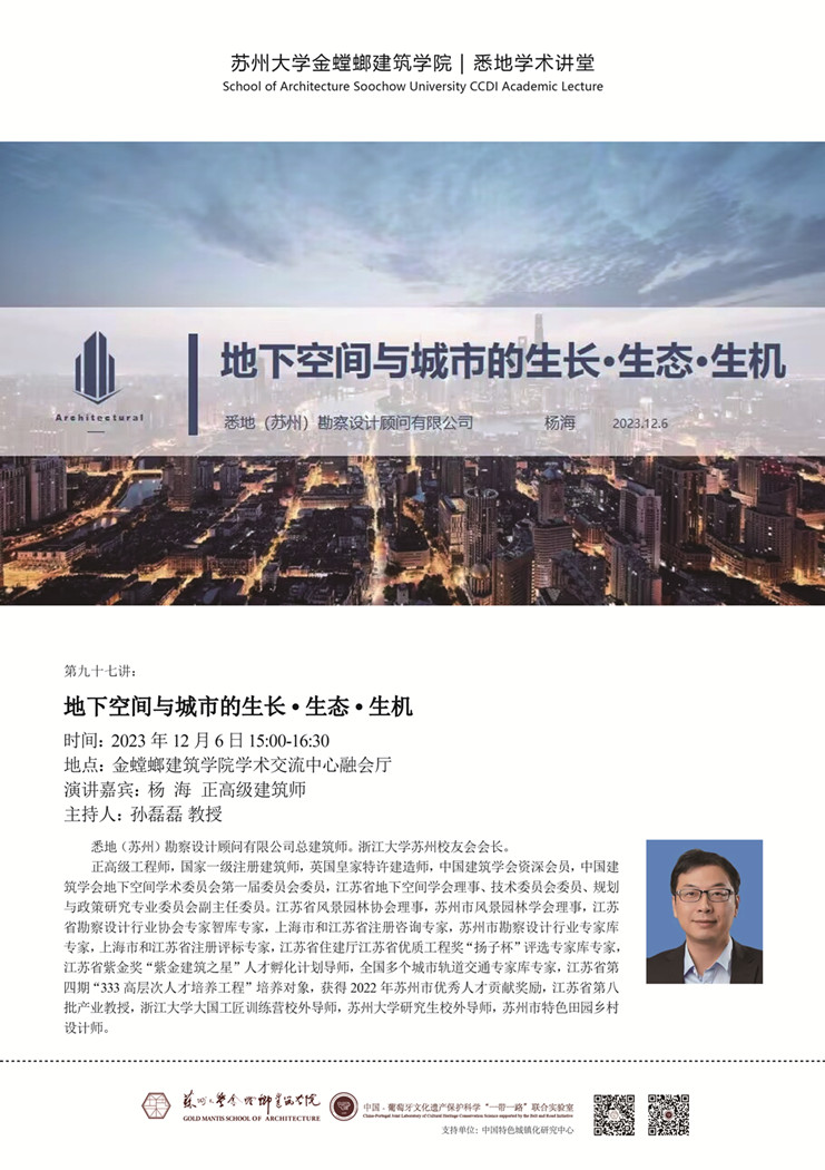 CCDI Academic Lecture 97: Underground Space and Urban Development, Ecology and Vitality