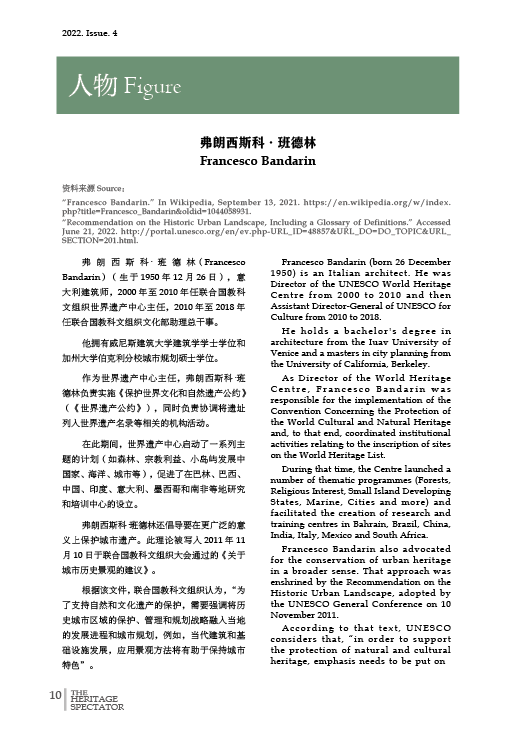 资料来源:“Francesco Bandarin.” In Wikipedia, September 13, 2021. https://en.wikipedia.org/w/index.php? title=Francesco_Bandarin&oldid=1044058931.