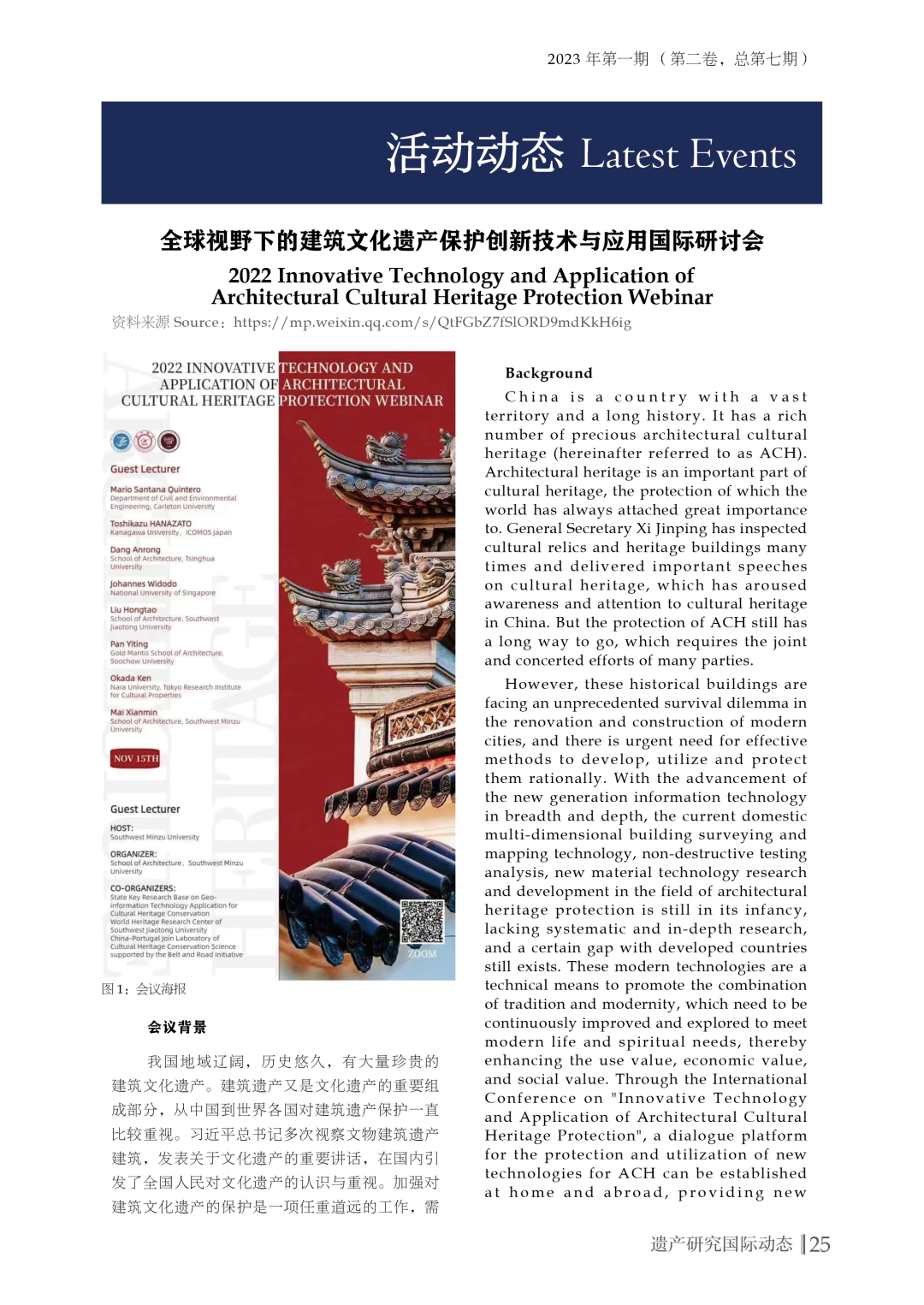 联合实验室中英双语双月刊《遗产研究国际动态》(内刊)2023年第一期(总第七期)已发布,全刊内容可在此下载
